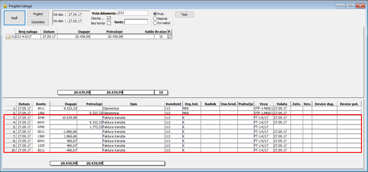 Interni obračun se knjiži u svrhu kontrole tranzita robe. Tranzitni magacin ne sme imati robu na zalihama.