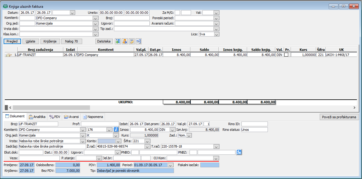 Nabavka robe na osnovu ulazne fakture i otpremnice dobijene od dobavljača;